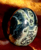 Kambaba Jasper comes from Africa and is exotic looking. It is known to soothe the nerves and calm the mind. It is good for grounding and protection. It helps with assimilation of vitamins and minerals and detoxing. This egg is about 2 1/2 inches tall.